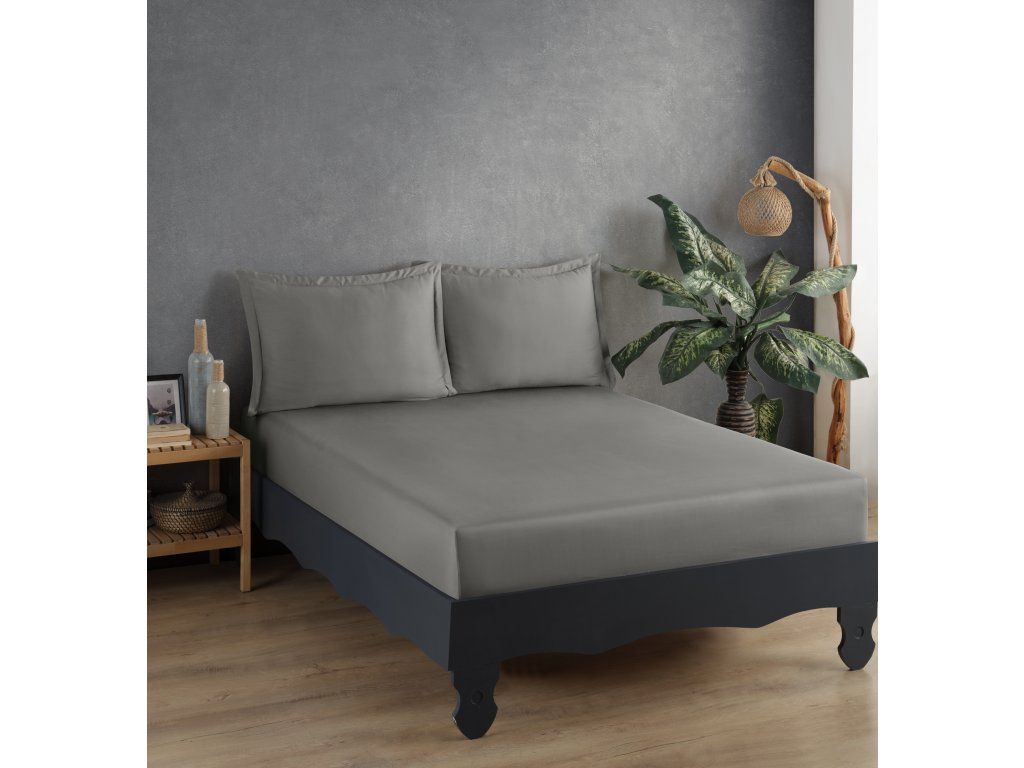 Napínací prostěradlo z bavlněného saténu, 180 x 200, Flat, Grey, V4