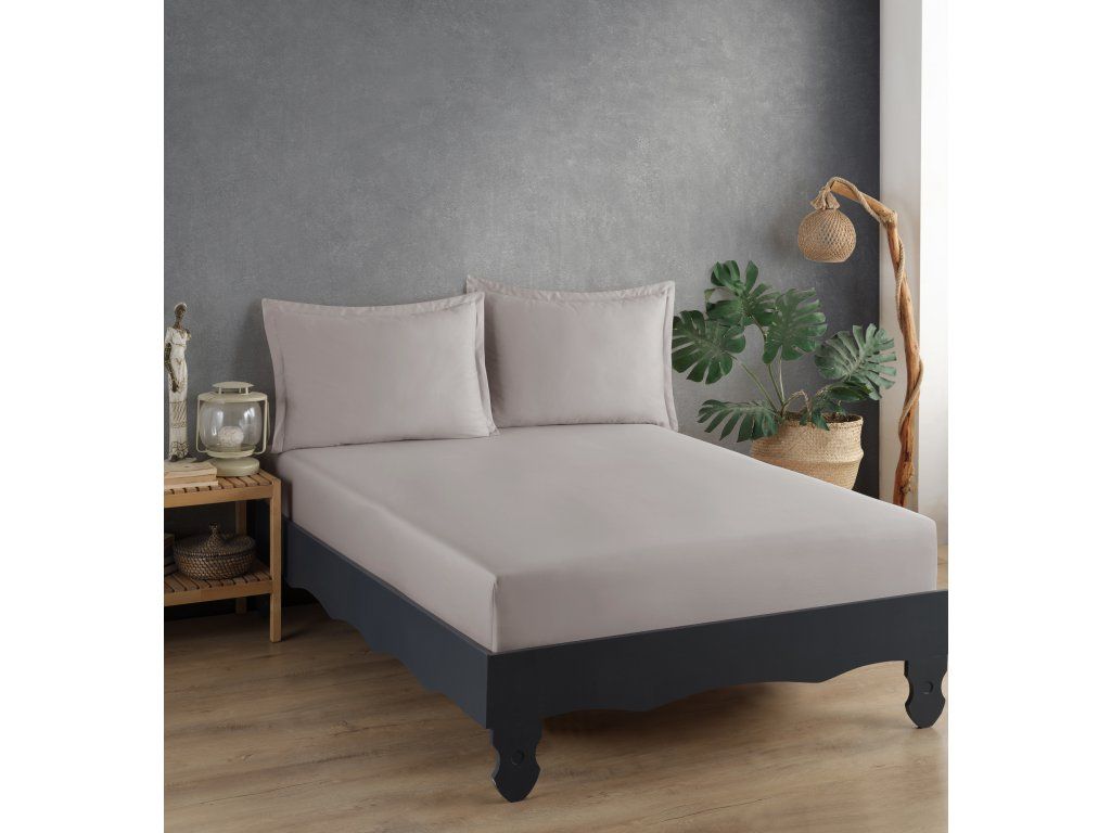 Napínací prostěradlo z bavlněného saténu, 90 x 200, Flat, Stone, V1